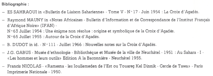 Raymond MAUNY a exposé les autres hypothèses sur les origines et le symbolisme de ce que nous continuerons par commodité à désigner sous le nom de Croix d’Agadès.
