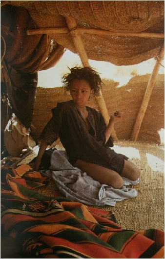 La jeune femme Kel Fadeï que l’on voit dans une position nonchalante manier son pilon est particulièrement typique du métissage en train de se produire entre les Touareg de souche et les anciens occupants du pays.