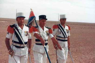 pour Reggan en juin 1962 Ksar el Hirane (Laghouat), cérémonie de départ du 1er ESPLE pour Reggan Ksar el Hirane (Laghouat), cérémonie de départ du 1er ESPLE pour Reggan Départ définitif de Reggan du 1er E.S.P.L.E, passage de consignes entre l'Escadron des «Cavaliers des sables» et la 1ère Compagnie Portée du 2ème Régiment Etranger (ex 2 C.S.P.L.) dans le cadre de la fusion des 4ème et 2ème Etranger et la restructuration de ce dernier Cette cérémonie se déroule au