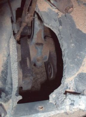 par le trou dans le bloc moteur fait au moment du crash.